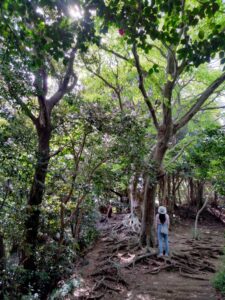 崖 みたいになっているところもあるし 木の根の階段を歩いて行くようなところもあります。